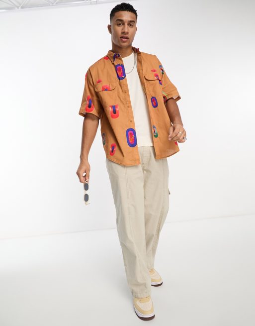 Levi s Skate boxy shirt in tan with all over print ASOS Very well made.