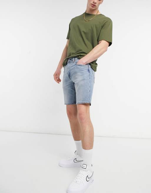 Levi s 412 slim fit denim shorts in whenever wherever flex stretch light indigo worn in wash Very well made.