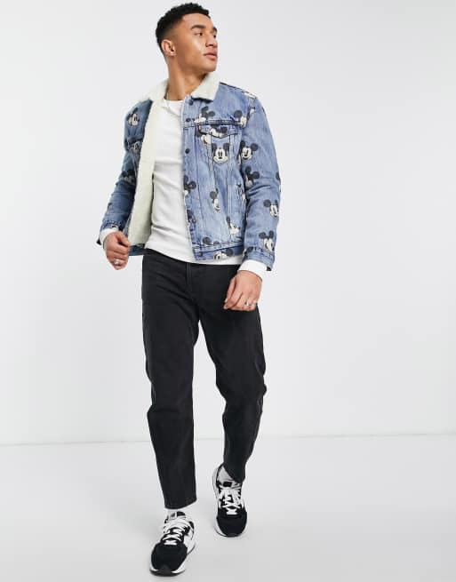 Levi s x Mickey Mouse Print Sherpa Trucker Denim Borg Jacket Size Very well made.