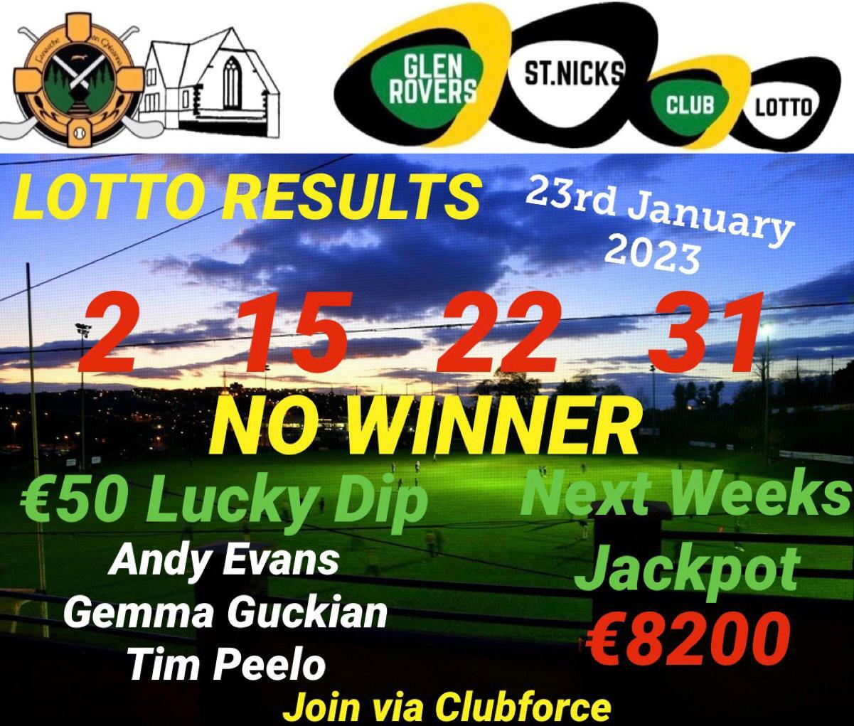 Glen Rovers Hurling Club Lotto Results 23 Jan 2023 Very well made.