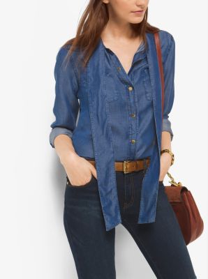 Denim Tie Neck Shirt Michael Kors Canada Very well made.