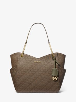 Michael Kors Jet Set Olive Green Leather Large Tote Shoulder Bag Purse Very well made.