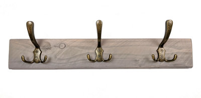 Wooden Antique Style Coat Rack Triple Hook Old Gold Colour Very well made.