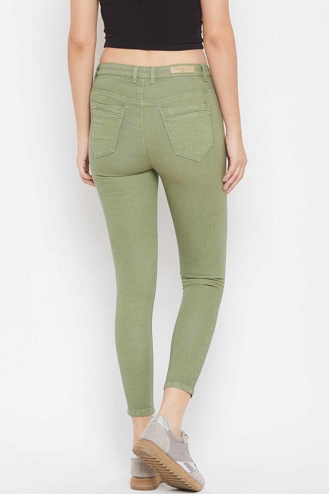 Buy CRIMSOUNE CLUB Green Womens Olive Solid Denim Shoppers Stop Very well made.