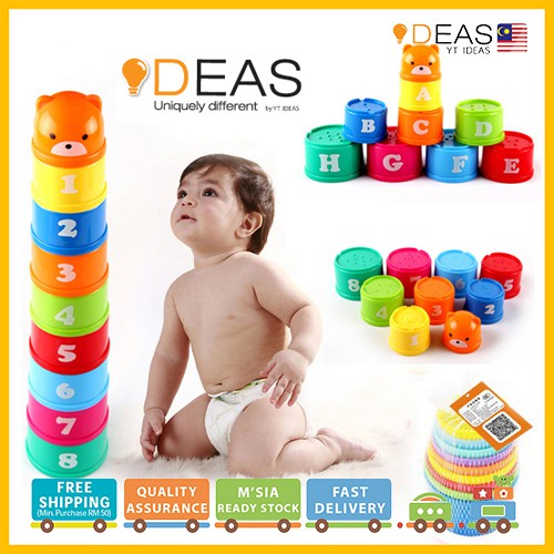 9pcs set Children Toddler Kids Colorful Stacking Cups Toy Sensory Education Number Letters Tower Cup Toys Very well made.