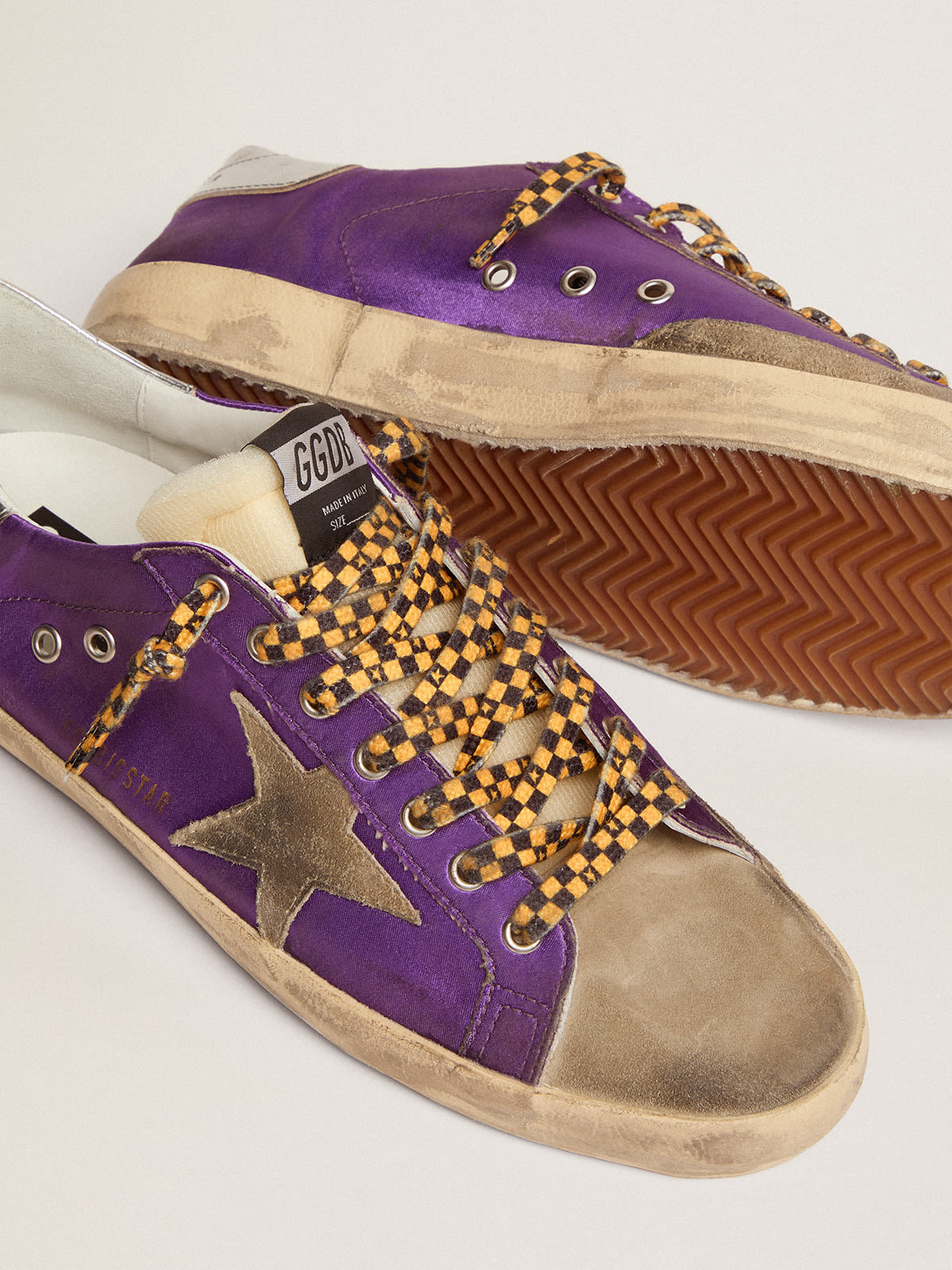 Super Star homme en satin violet avec toile en daim gris tourterelle Very well made.