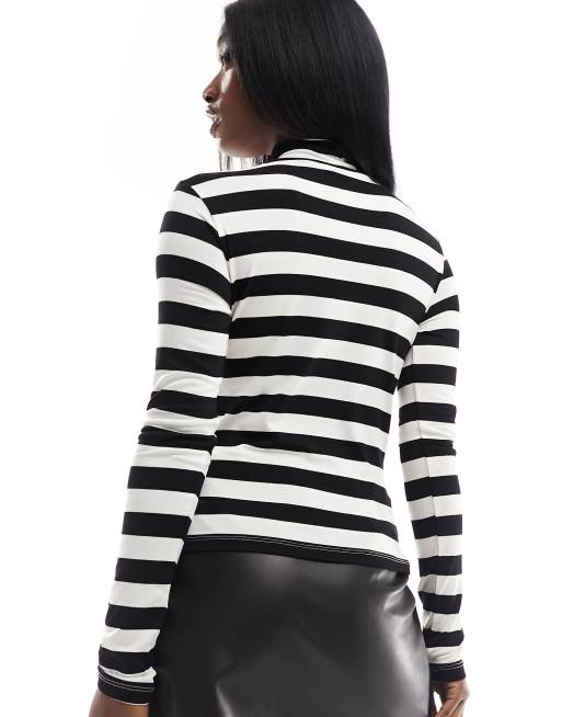 NA KD Top accollato a maniche lunghe a righe bianche e nere Very well made.