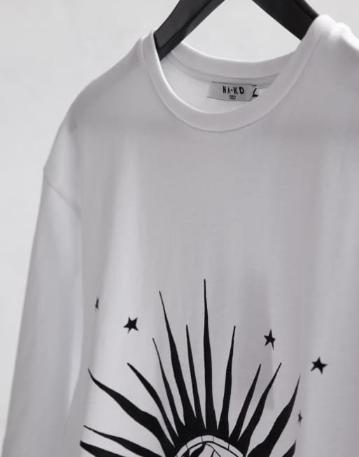 NA KD T shirt bianca con stampa con sole e luna Very well made.