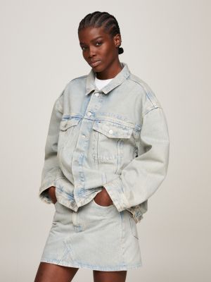 Tommy Jeans Women s Oversized Fit Cropped Denim Jacket Denim Light Very well made.