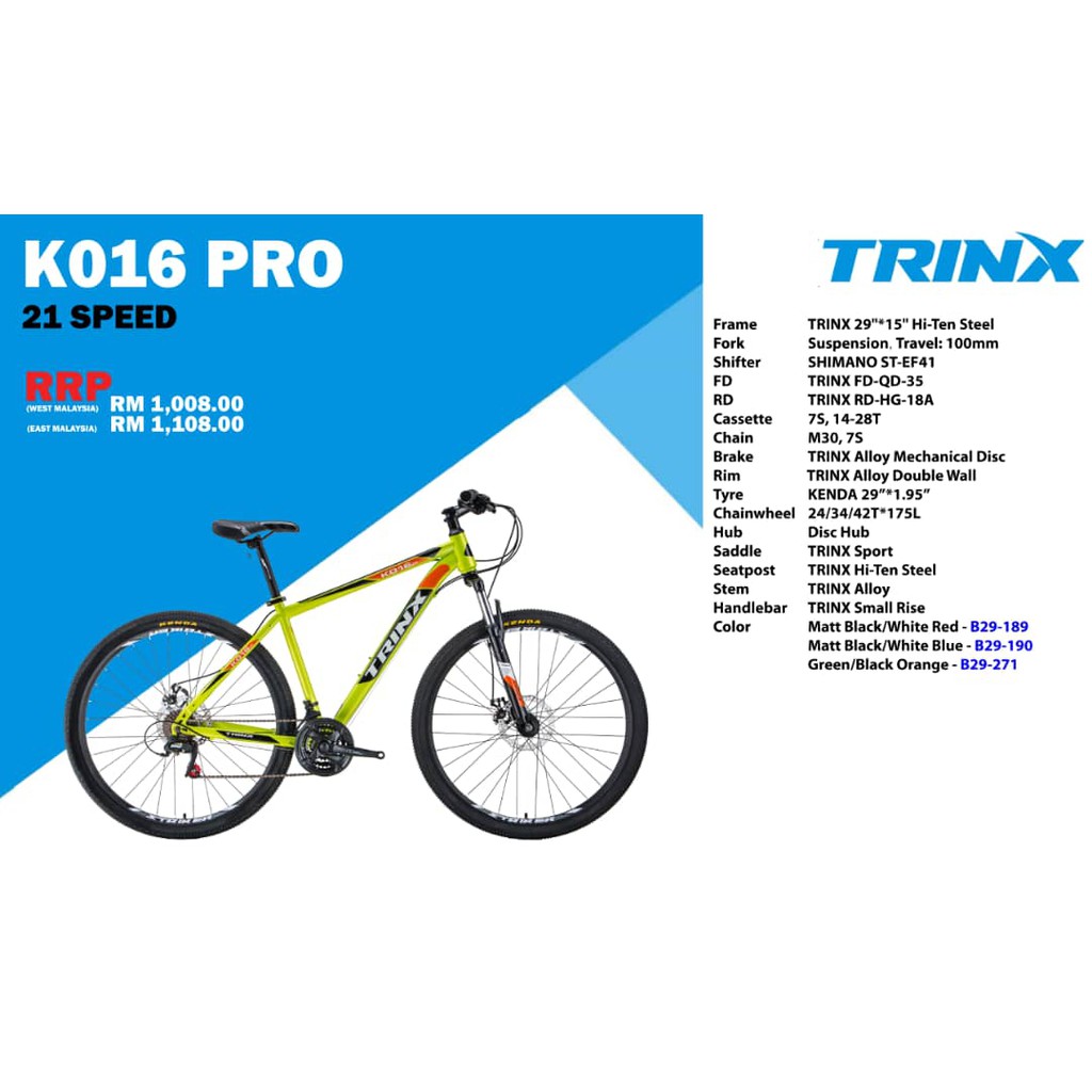 TRINX MTB 29er K016 PRO 21 SPEED FRAME STEEL Shopee Malaysia Very well made.