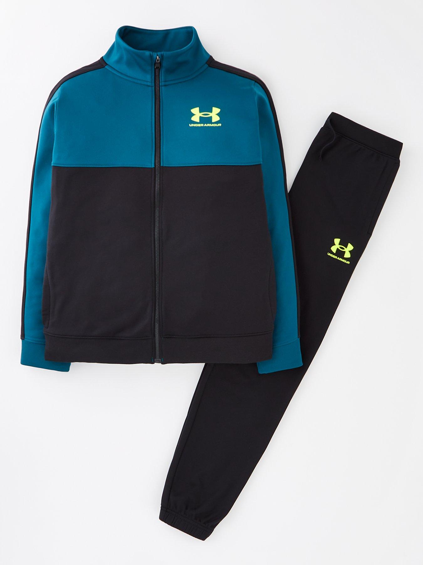 UNDER ARMOUR Junior Boys Colourblock Knit Track Suit Black Blue Very well made.