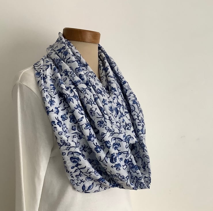 100 Fine COTTON lawn infinity scarf. Delft Folksy Very well made.