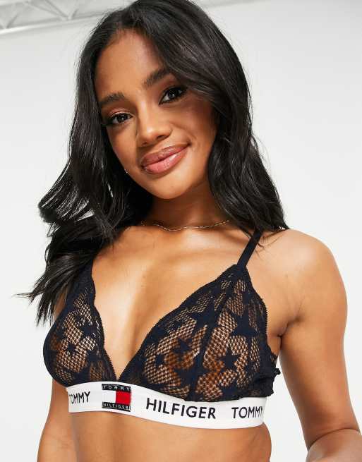 Tommy Hilfiger 85 Star Lace unlined triangle bralette in navy NAVY Very well made.