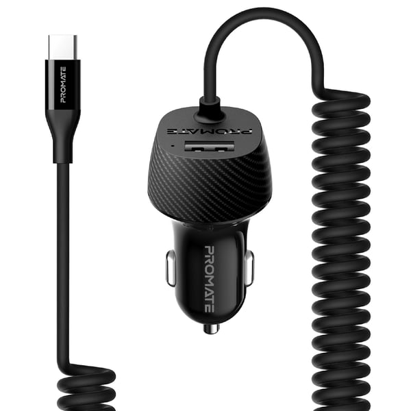 Buy Promate 3.4A Car Charger Adapter with Built In Coiled USB C Very well made.