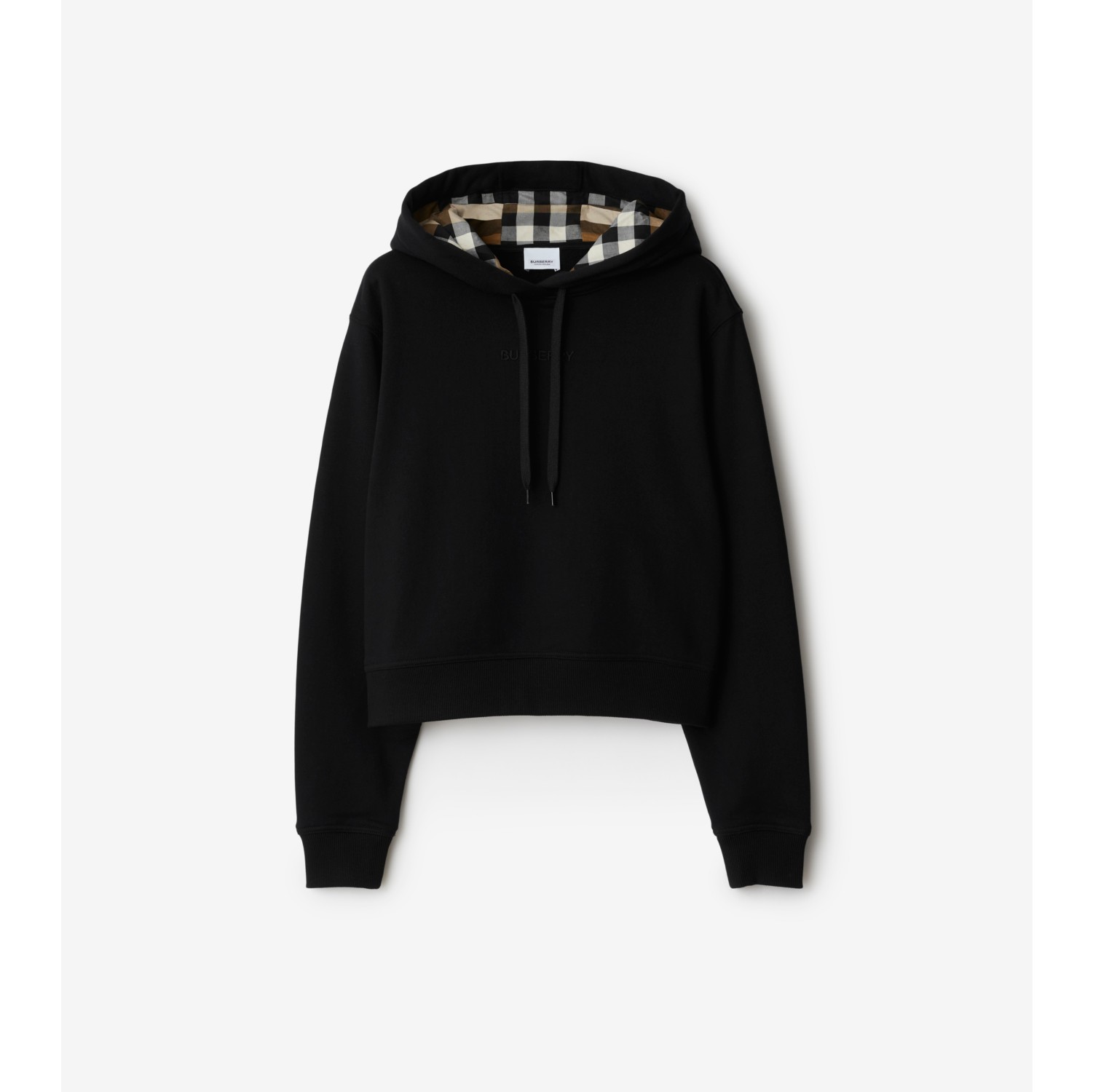 Cropped Cotton Hoodie in Black Women Burberry Official Very well made.