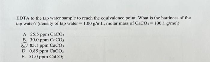 EDTA to the tap water sample to reach the equivalence Chegg Very well made.