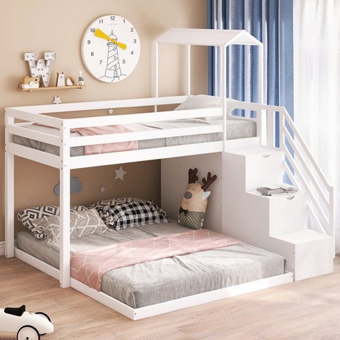 Twin Over Full Bunk Bed With Staircase Shelves And House Roof Very well made.