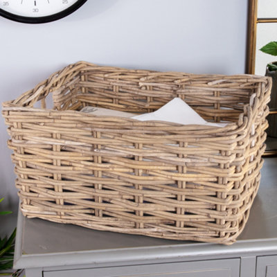 Traditional Large Rectangular Grey Rattan Storage Basket DIY at B Q Very well made.