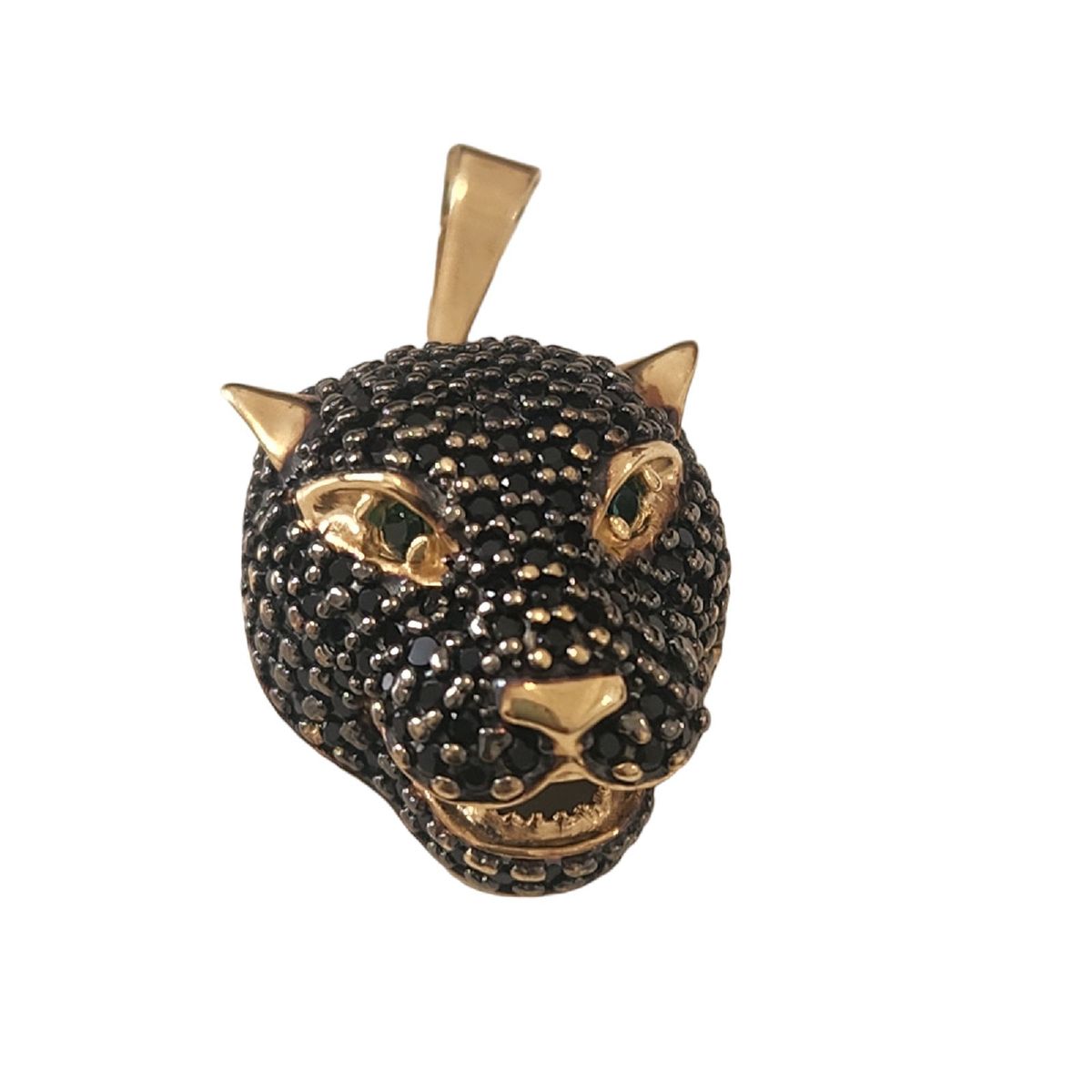 Pingente Cabe a de Pantera Ouro 18k Amarelo Zirconio Negro e Verde Nos Olhos.rosangela Lima Joias J ia Feminina Rosangela Lima Joias Nunca Usado Very well made.