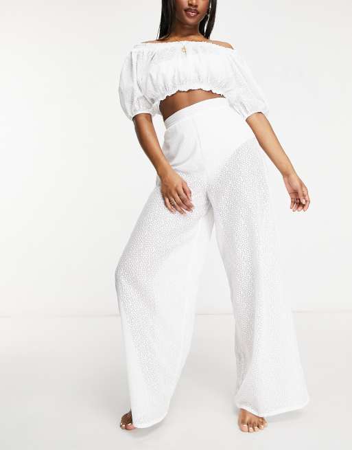 Fashion Union Exclusive wide leg high waist beach pants in white lace Very well made.