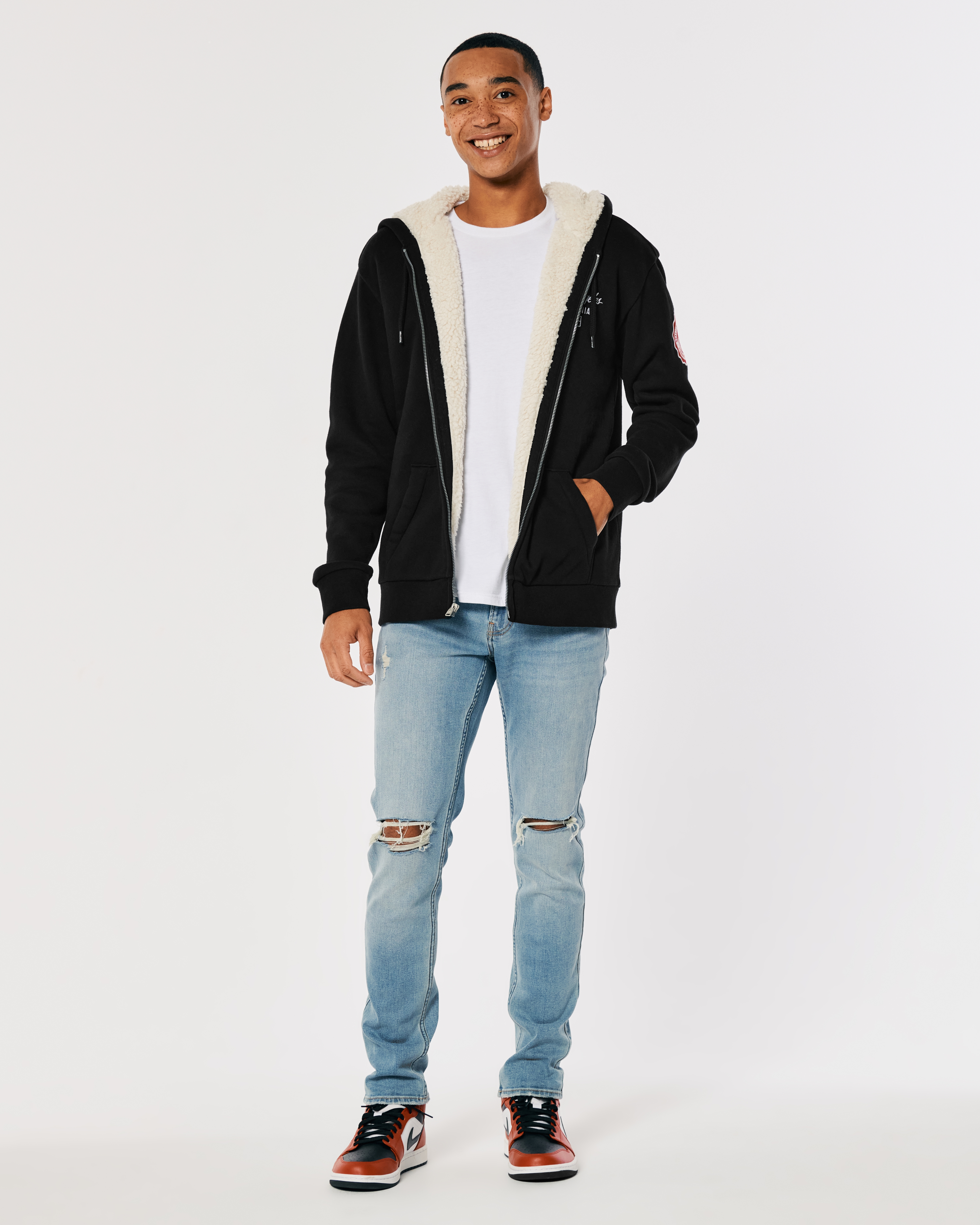Hollister icon logo fleece lined ombre hooded jacket in black white Very well made.