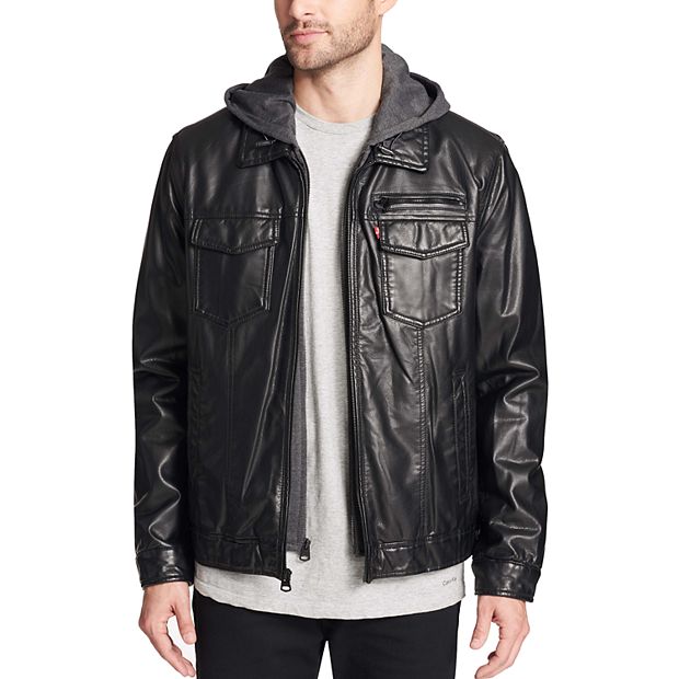 Men s Levi s Sherpa Lined Faux Leather Trucker Jacket Very well made.